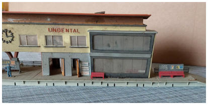 Unter anderem den Bahnhof „Lindental“ von Faller sowie eine Windmühle.