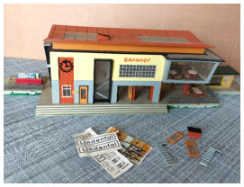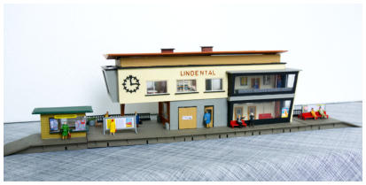 Unter anderem den Bahnhof „Lindental“ von Faller sowie eine Windmühle.